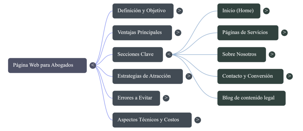 Para que una web jurídica funcione bien, debe incluir ciertas secciones clave.